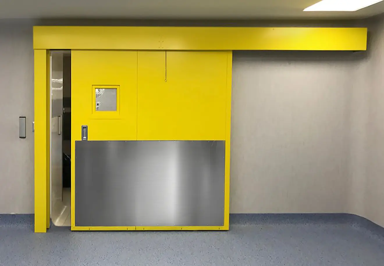 Producto diseñado especialmente para equipamientos sanitarios. Se trata de un producto idóneo para ser instalado en hospitales y centros de manipulación de alimentos. Sus acabados en acero inoxidable o PVC auto extinguible y atóxico conforme norma D.I.N. 21.3.73/2.6.82 y 25.4.93 impiden la adherencia de bacterias y permiten una fácil limpieza de la puerta.