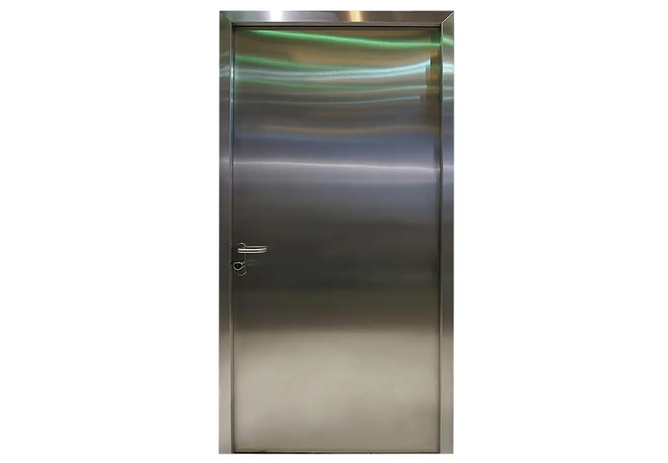 Puertas del más alto nivel de acabado realizadas en acero inoxidable antihuellas. Presenta alta resistencia a la corrosión en atmosfera industrial y marina. Resiste a casi todos los agentes de corrosión utilizados en la industria. El material con el que se fabrican ha sido ensayado en laboratorio, demostrando su resistencia a multitud de agentes químicos.